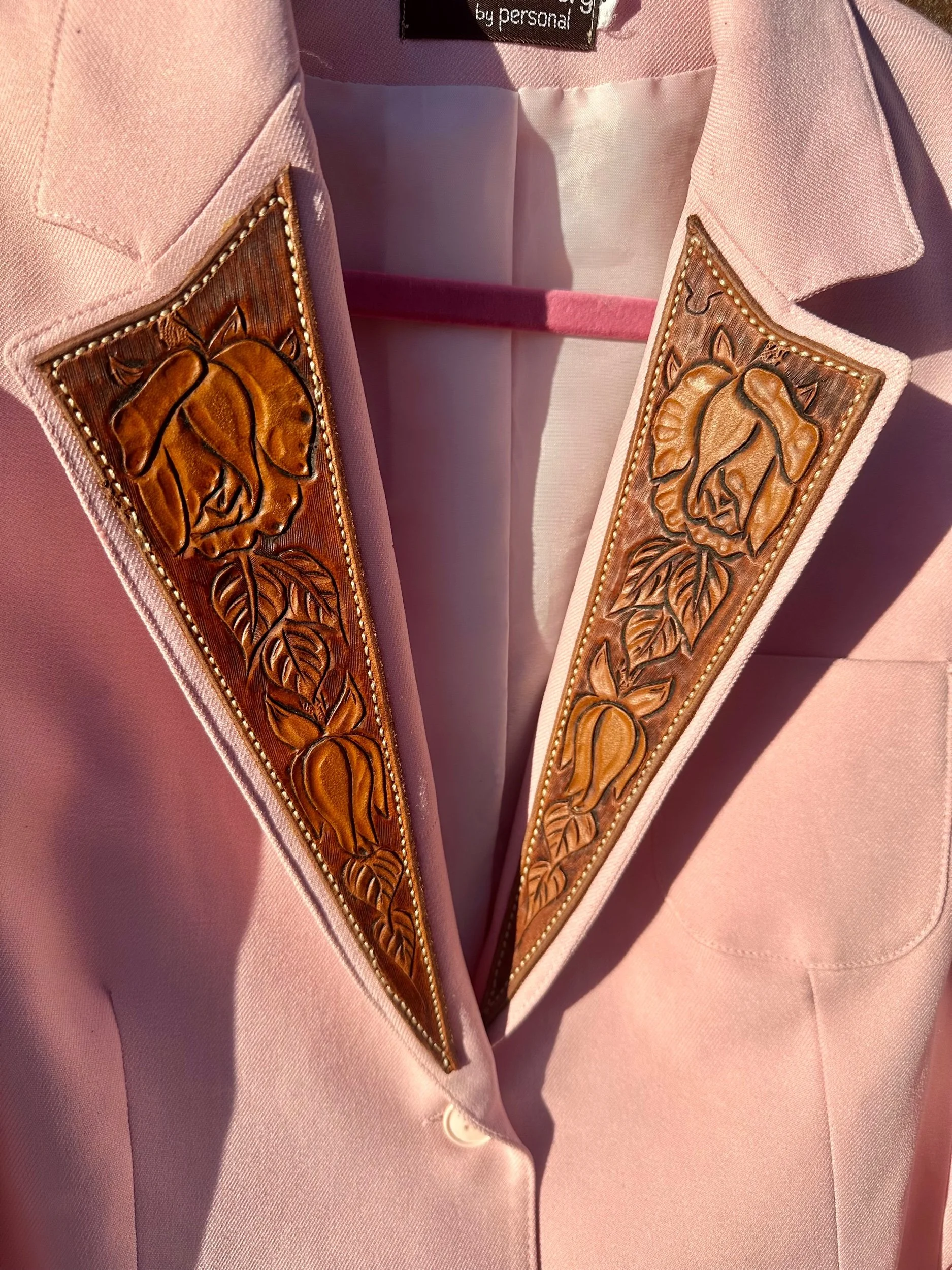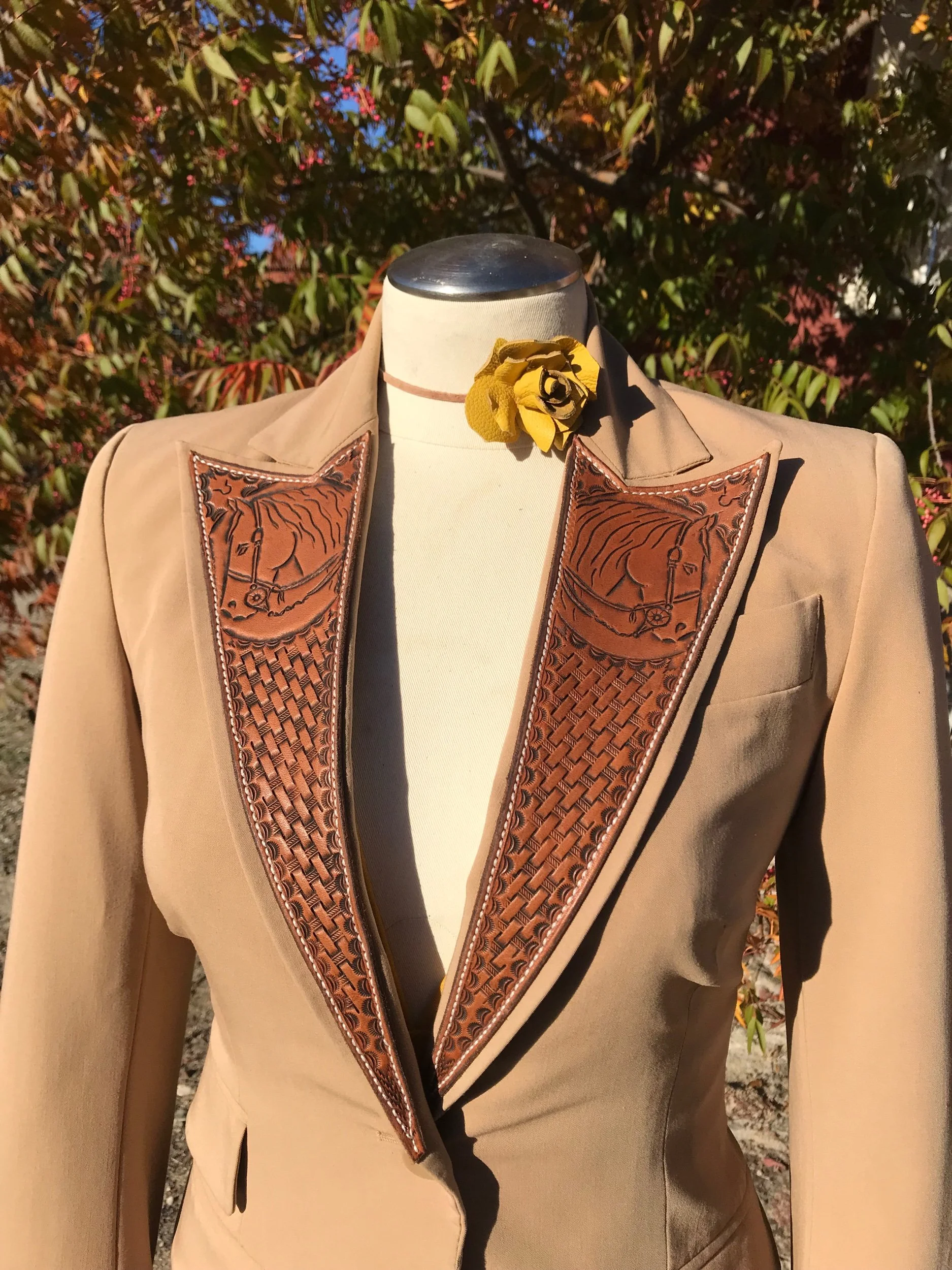 “Crafted by Working Hands.” Built by a working cowgal for the working cowboy kind. Shop Heart Sheath Brown Stitch $45.00 Heart Knife Sheath $45.00 Tooled Pancake Sheath $55.00 Latigo Pancake Sheath $45.00 Single Ear Headstall $215.00 Headstall with Flower Conchos $250.00 Pink Rose Blazer $200.00 Silver Spoon Bit Hanger $45.00 Silver Spoon Bit Hanger $45.00 34 Inch Mohair Cinch $175.00 28 Inch Mohair Cinch $175.00 Prickly Pear Blazer $200.00 29 Inch Mohair Cinch $175.00 Sold out Blue Oak Jacket $200.00 Sold out Red Rose Jacket $200.00 Bridle Horse Jacket $200.00 30 Inch Mohair Sweetheart Cinch $175.00 Sold out